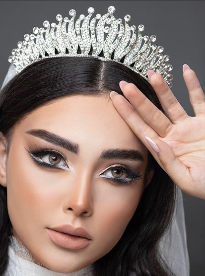 میکاپ با گریم کامل کانتورینگ استروبینگ فینیشینگ پوست مخملی مژه سه بعدی شنیون حرفه ای تاج