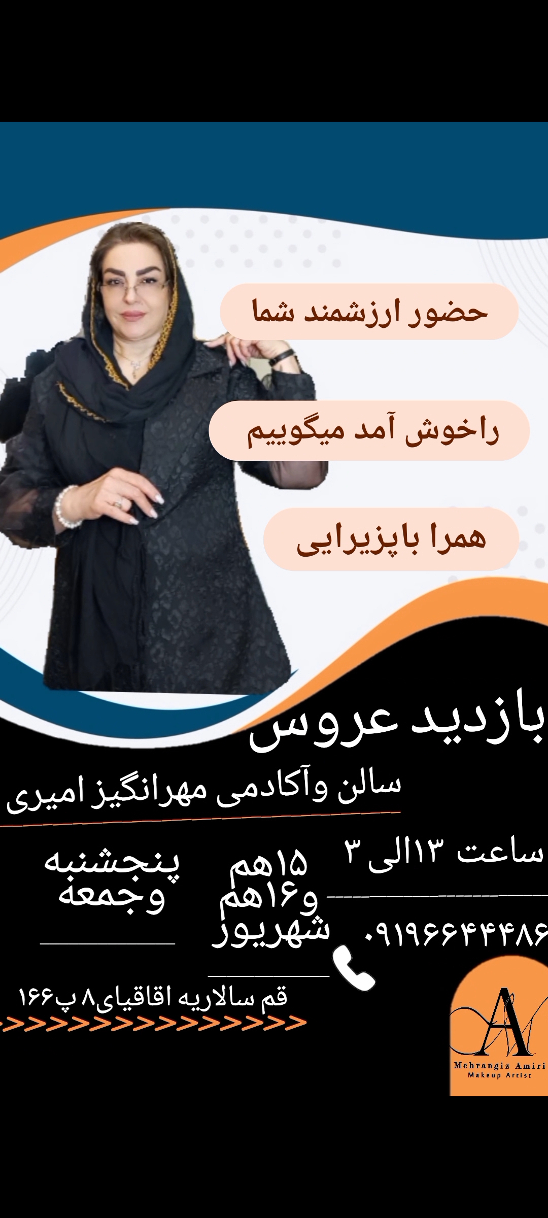 قم - سالاریه،اقاقیای 8،پلاک 166، سالن زیبایی و آکادمی مهرانگیز