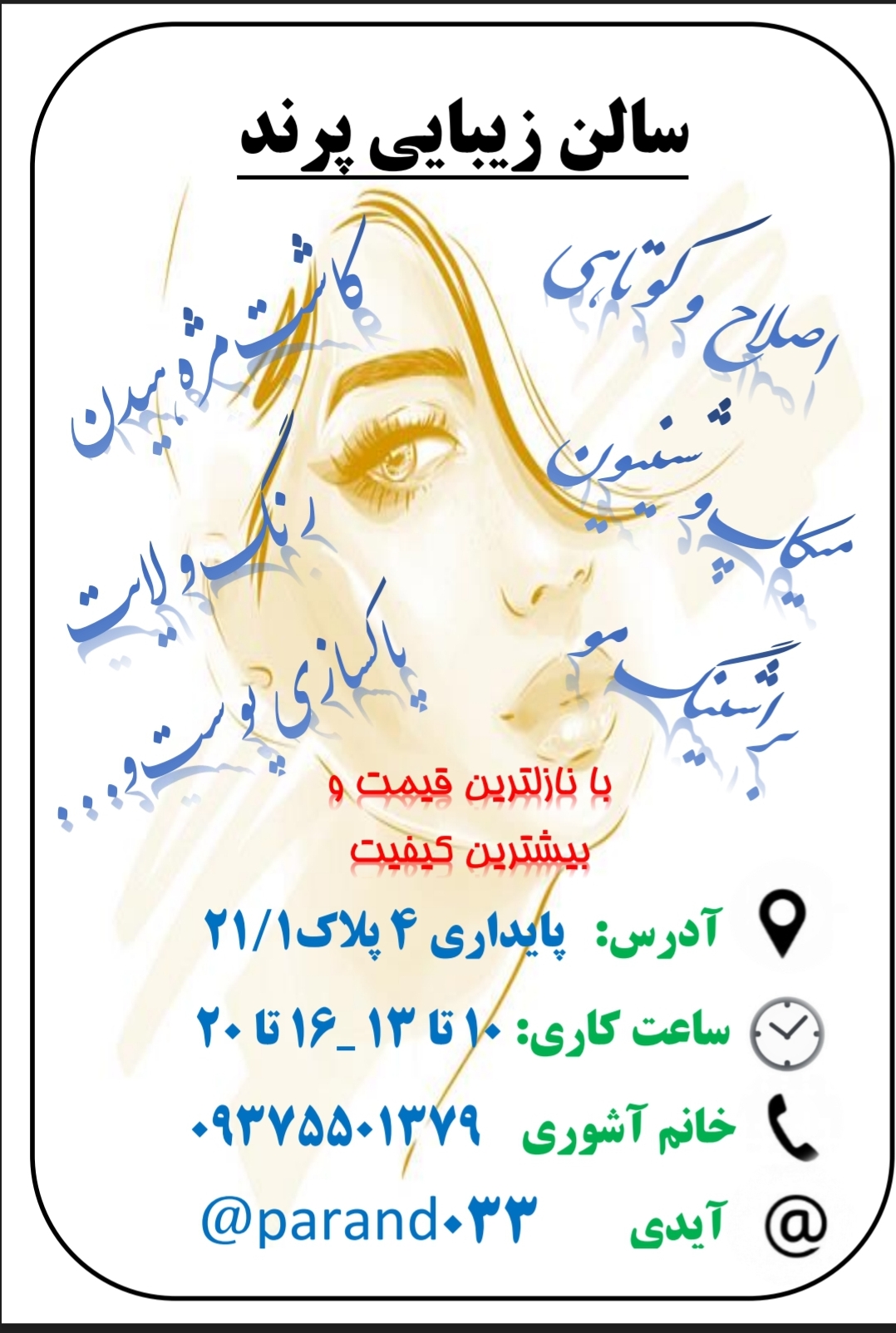 (مدیر سالن زیبایی پرند) مشاوره آنلاین بگیری؛