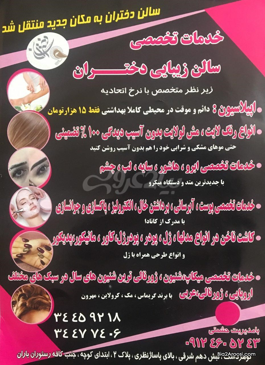 شینیون ژورنالی ، پاکسازی آبرسانی ، خدمات ناخن فیکساتور بدن، اصلاح ابرو ،